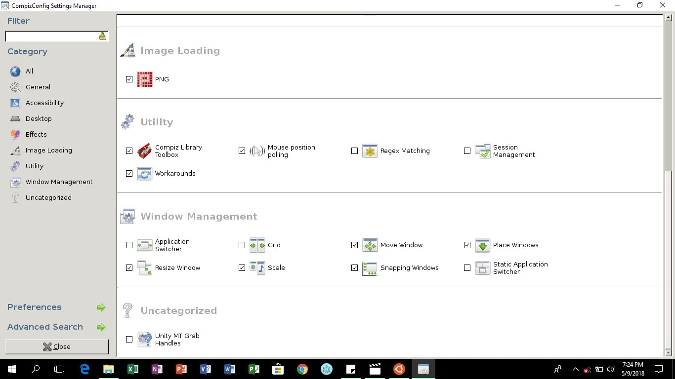 - When the Ubuntu desktop finishes installing, run the following command to open compiz: